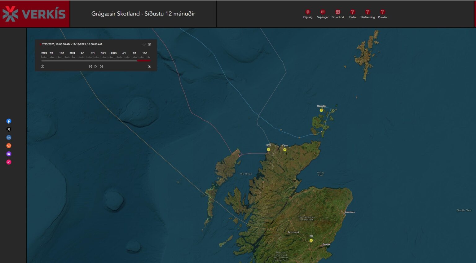 Gögn úr sendunum gefa einstaka innsýn í ferðir fuglanna, bæði á varptíma og þegar haustflutningar hefjast.