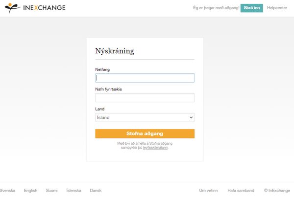 Nýskráning á vef Inexchange
